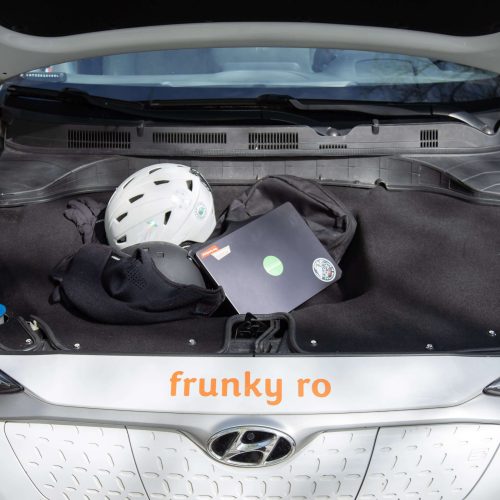 Frunky este primul portbagaj frontal creat pentru mașinile electrice care îmbină funcționalitatea cu un design elegant. Frunky îmbracă integral spațiul de sub capotă, pentru ca tu să ai un frunky feeling.